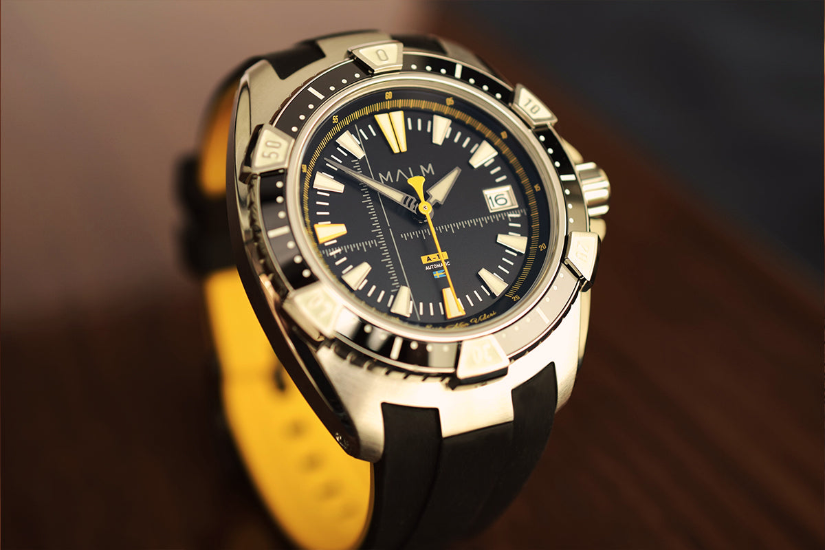 The A-11 Automatic was originally developed in collaboration with members of the Swedish Submarine Flotilla. Designed to capture the essence of Swedish submarines, it draws inspiration from details and equipment found onboard, such as the periscope sight in the dial. Paying tribute to Sweden’s history of submarine manufacturing, the caseback features the silhoutte of the iconic A-11 submarine.