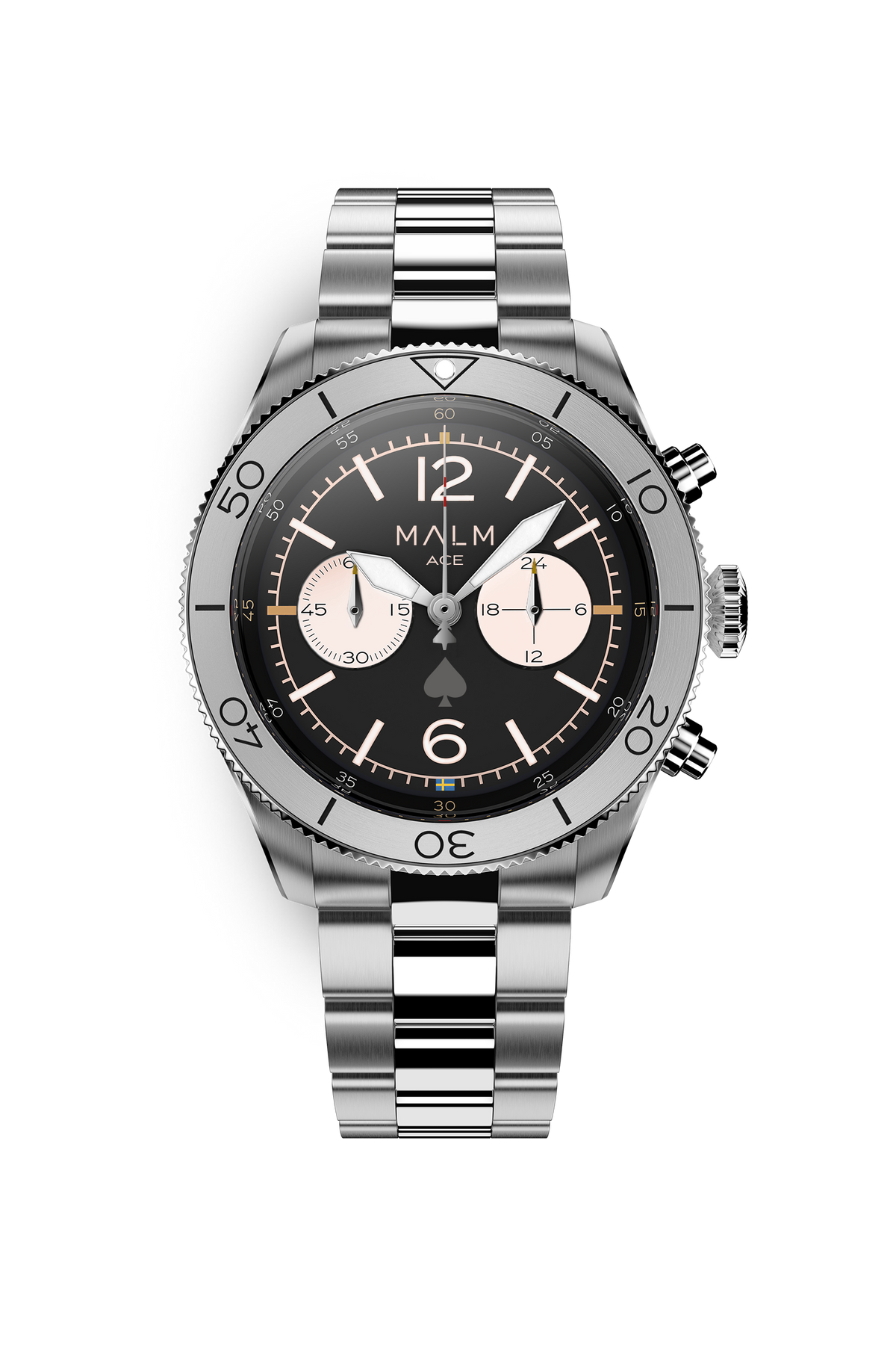 MALM Watch Ace Black Panda Chronograph, Quartz,44mm with Seiko VK64, stainless steel, sapphire crystal and 10ATM.